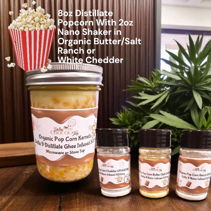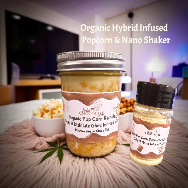 There is NO SUBSTITUTE for hot buttery Popcorn! We made your movie night so easy and included everything you need! We found the best quality organic yellow gluten free popcorn kernels that has soaked in Delta 9 infused 500mg ghee. Then took it further with organic Nano 500mg popcorn seasoning. Choose between: