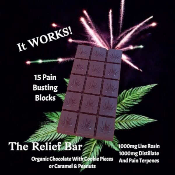 Delta 9 Relief Chocolate Bar, Live Rosin 2000mg Organic Chocolate Bar
